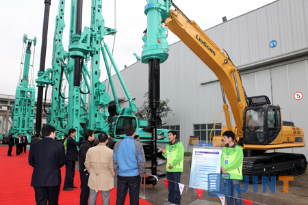 上海金泰邀请了来自全国各地的用户代表和包括柳工集团工程机械产品经销商在内的业界朋友和合作伙伴共计400余人,上海机电股份有限公司常务副总经理王心平和柳工集团总裁杨一川应邀前来表示祝贺,并在公司林坚总经理的陪同下参观了产品展示现场。