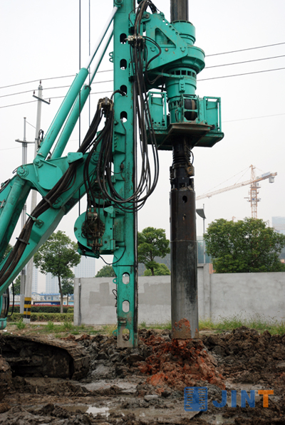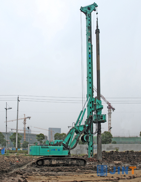 据现场工程人员介绍,宜兴农商行大厦设计高度118米,地面23层,地下2层,地表下1-20米是淤泥层、20-30米处为强风化泥岩。金泰SD20A型多功能钻机主机搭载该钻具,平均2小时可完成一根30米深的桩孔施工。在现场施工的旋挖钻机施工效率为4小时/桩,工程钻机为24小时/桩。