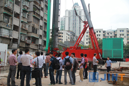 上海金泰自主研制的SC35双轮搅拌钻机再次成为桩工行业关注的焦点。近日,由广东省岩土力学与工程学会主办,广州大学、广州大学建筑设计研究院、江苏弘盛建设工程集团有限公司、江苏科弘岩土工程有限公司等单位发起的“液压铣削深搅水泥土地连墙技术”(HCSCMW工法)交流与施工现场观摩大会在广州举行。其主要目的是为了对这一国际领先的新机械、新工艺、新技术进行全面推广。