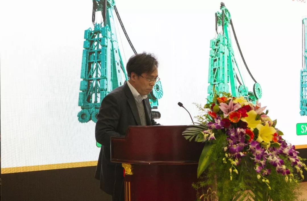 上海金泰研究一所所长胡成云先生做《旋挖钻机技术与应用》的演讲/上海金泰广州分公司总经理王建忠跟大家分享《连续墙液压抓斗产品的技术与应用》/营销公司产品工程师王宇清分享《SX系列双轮铣技术亮点和应用》