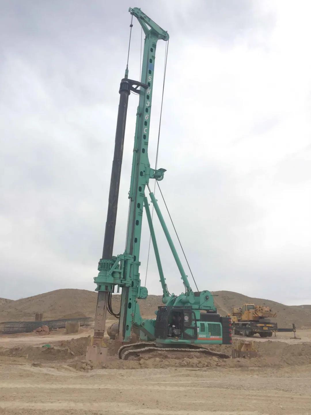 其中金泰SH36C多功能钻机是一种大三角结构的新型桩工机械产品,融合了现代液压桩工机械新技术和新工艺,产品通过优化设计,改善液压系统,提高了有效输出功率。同时通过增加下底盘重量,采用后置大容量单排绳卷筒主卷扬机,能在大扭矩施工中保持超高的稳定性和良好的钻孔垂直度。