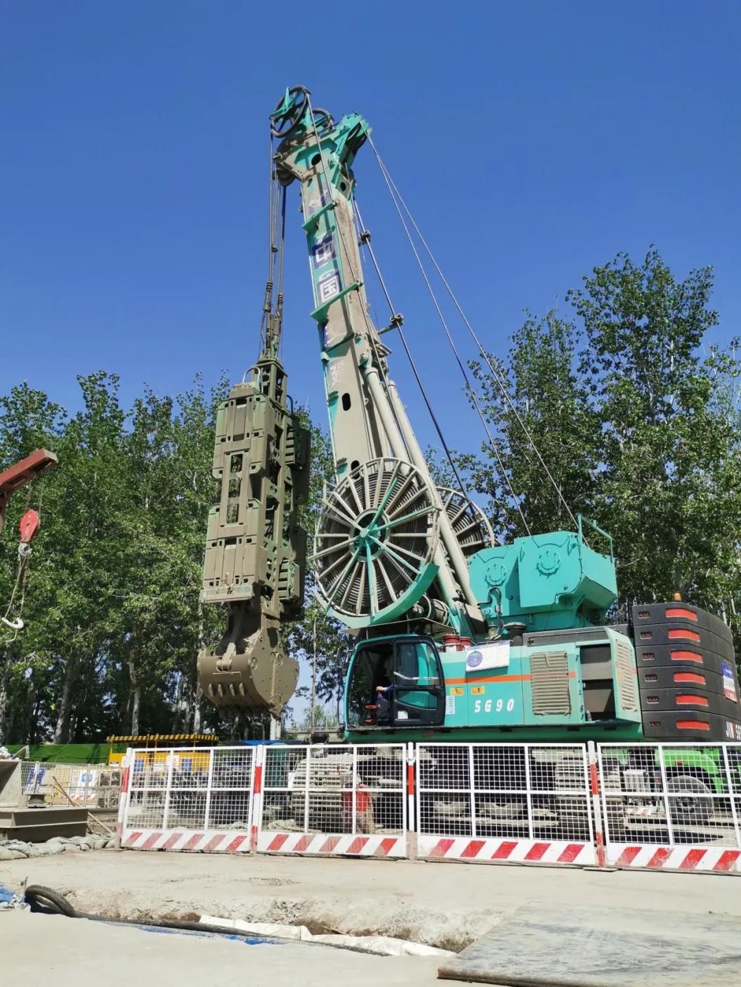 该项目南起京哈高速立交,北至潞苑北大街,全长约16公里。从4月27日开始,金泰SG70、SG90地连墙抓斗进行首幅地连墙开槽施工。