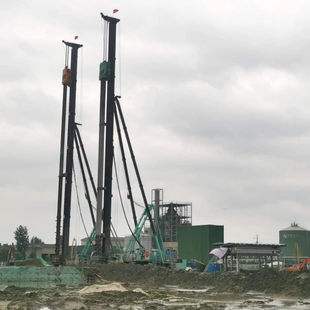 该地块地层主要由砂质粉土、淤泥质粘土、粉质粘土夹粉砂、圆砾层构成,满足传统三轴产品的施工条件。据现场工作人员介绍,项目总工程量约20万方,设计槽宽850mm,墙深21m。金泰ZKD85-3G与友商180三轴产品将在预定工期内各完成10万方的工程量,目前金泰ZKD85-3G已完成近2000多幅槽,每天可完成60多幅槽,施工效率是同场设备的1.5倍。