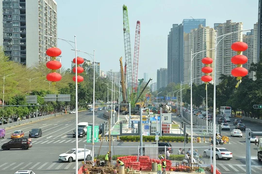 小编在车流如织的宝安大道上看到,仅有3车道,如此狭窄的施工作业面上,将建起一座粤港澳大湾区城际铁路的三线换乘车站,无异于“螺蛳壳里做道场”,难上加难。但是,项目的业主单位和参建者克服种种困难,在尽量不影响交通的情况下快马加鞭搞建设。
