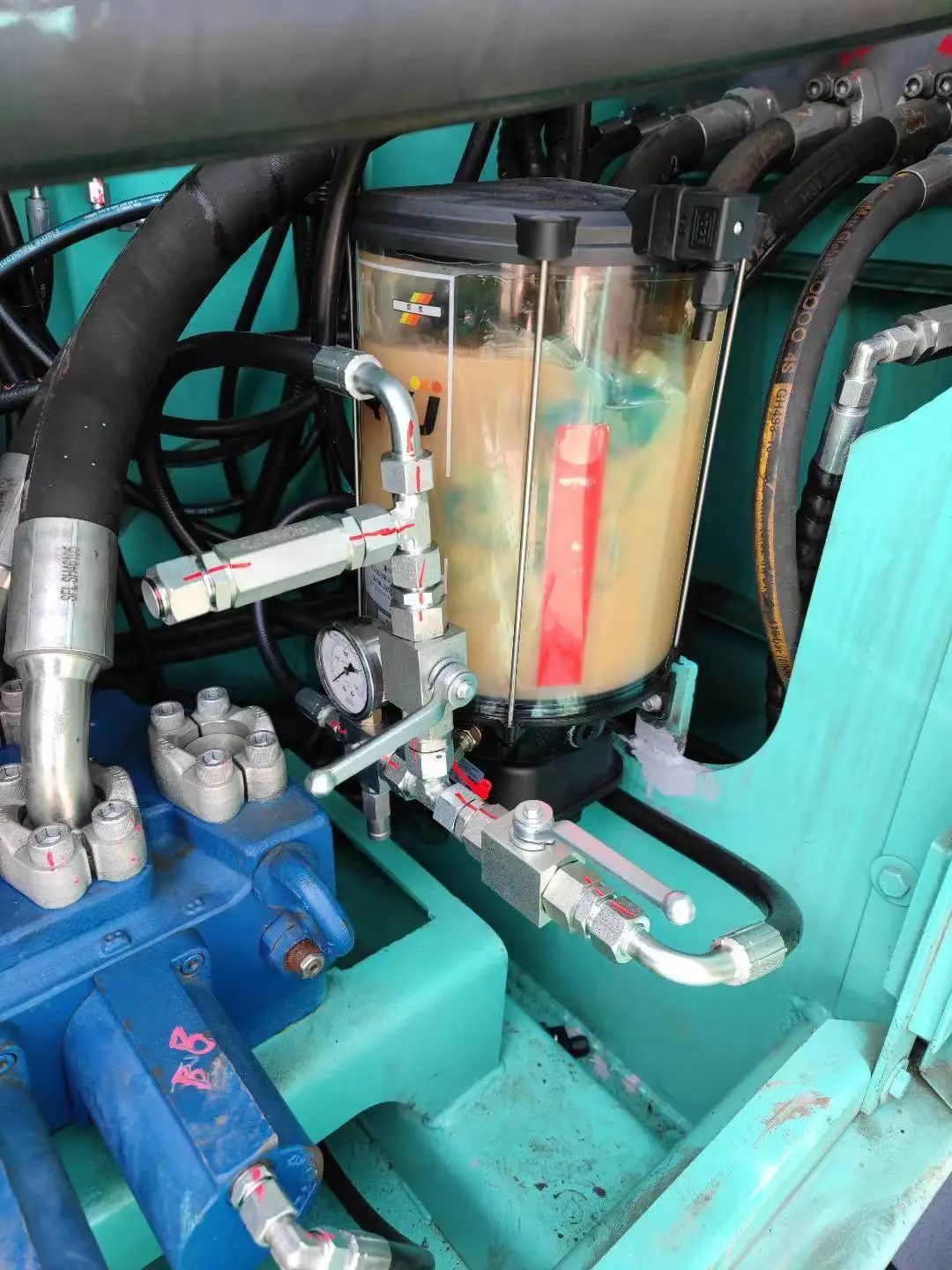 • 具备自动润滑功能,免人工维护,大大的提高了施工效率,降低了工人的劳动强度。(据统计,这套自动润滑系统,可节约额外辅助时间和人工成本4~5小时,成而转会为整体施工效率,有效提高运营成本。)点赞!