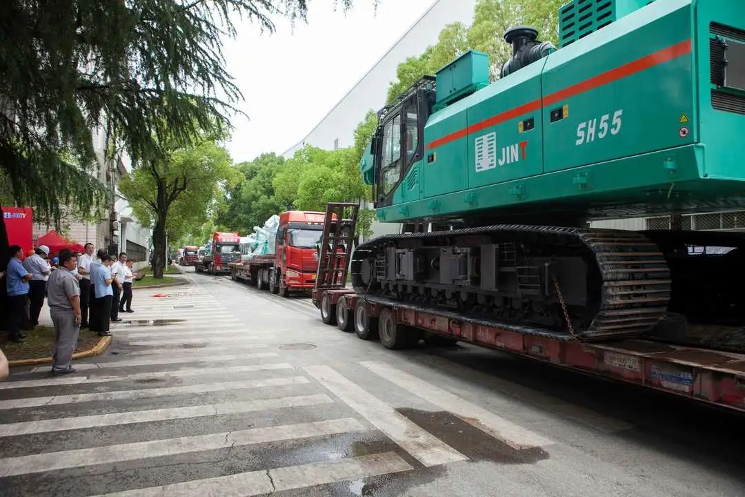 6月20日上午11时,“2023上海金泰海外市场批量交付发车暨服务保障团队出征仪式”于上海安亭洛浦路45号金泰本部隆重举行。一辆辆满载主机、附件和钻具以及现场保障用品备件的卡车从金泰本部驶向港口,奔赴中东、北美、澳洲、南亚、俄罗斯等国家和地区,为上半年的收官工作再敲重锤。上海金泰总经理黎隶万、党委书记陈雪英、董事副总经理徐峰等公司主要领导以及生产、研发、营销等各部门代表共同参加见证。