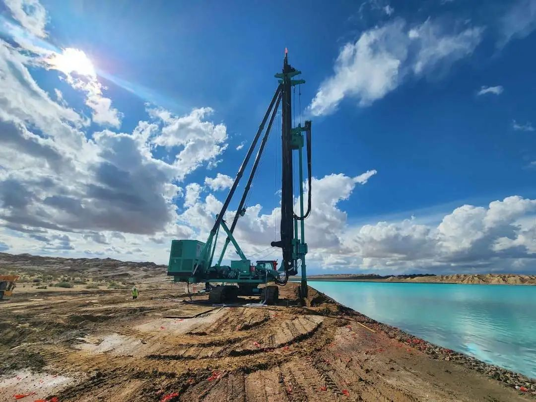 日前,6辆满载SC45液压铣削搅拌钻机主机和部件的大件货运车从上海金泰安亭本部浩浩荡荡一路向西奔赴新的疆场。一周后,车队抵达青海省德令哈市“动态平衡生态环保提升改造项目”工地。卸车、组装、调试一气呵成,简单的开工仪式后,SC45稳稳驶上坝基就位,立即投入3#拦挡坝堤防渗墙施工。在蓝天、白云、幽深的湖水映衬下,显得格外耀眼靓丽。这是青海省首次引进CSM工法并应用于生态环境保护工程建设,标志着上海金泰SC45液压铣削钻机在祖国基础建设版图上再立新的里程碑。